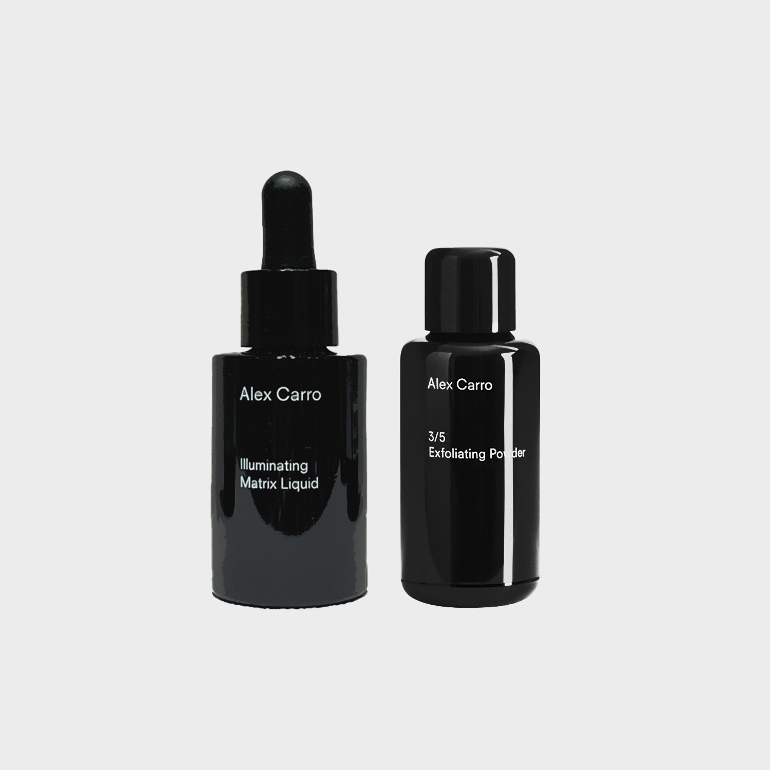 Mix our powerful triple-action, ultra-light Illuminating Matrix Liquid serum (hyaluronic acid, sophora, liquorice root, natural fruit acids (5%), natural minerals and vitamins) with our all-natural, gentle Exfoliating Powder (walnut, coconut, papaya, bamboo, damascus rose, natural vitamin E) and water for perfectly smooth, polished, profoundly cleansed skin.